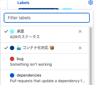 issueなどと共通のラベルになってしまうのでここの運用はやや無理があるのですが