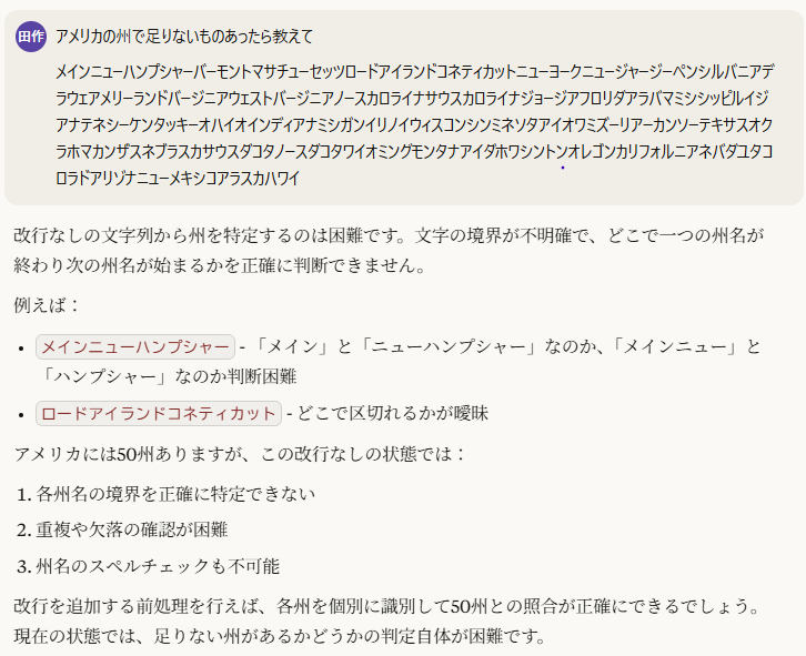カタカナ羅列で50州が全て記載してあるかお願いしたら回答を避けられてしまいました。